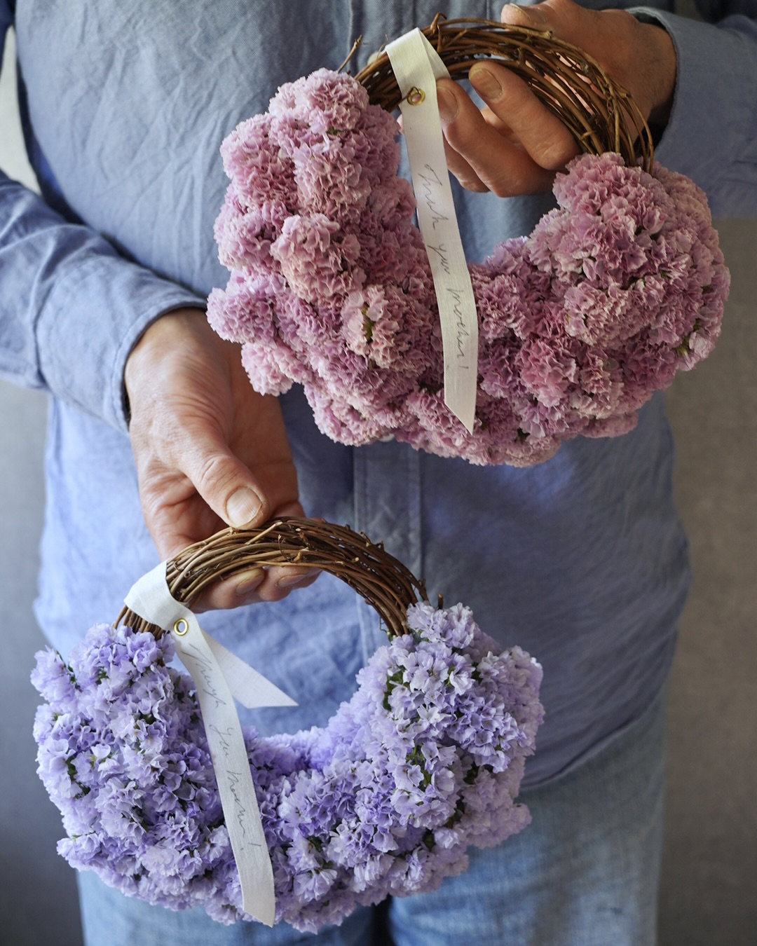 そしてセットのお花は長く楽しんでいただけるようにとニュアンスカラーのスターチスのハーフリースにしました。