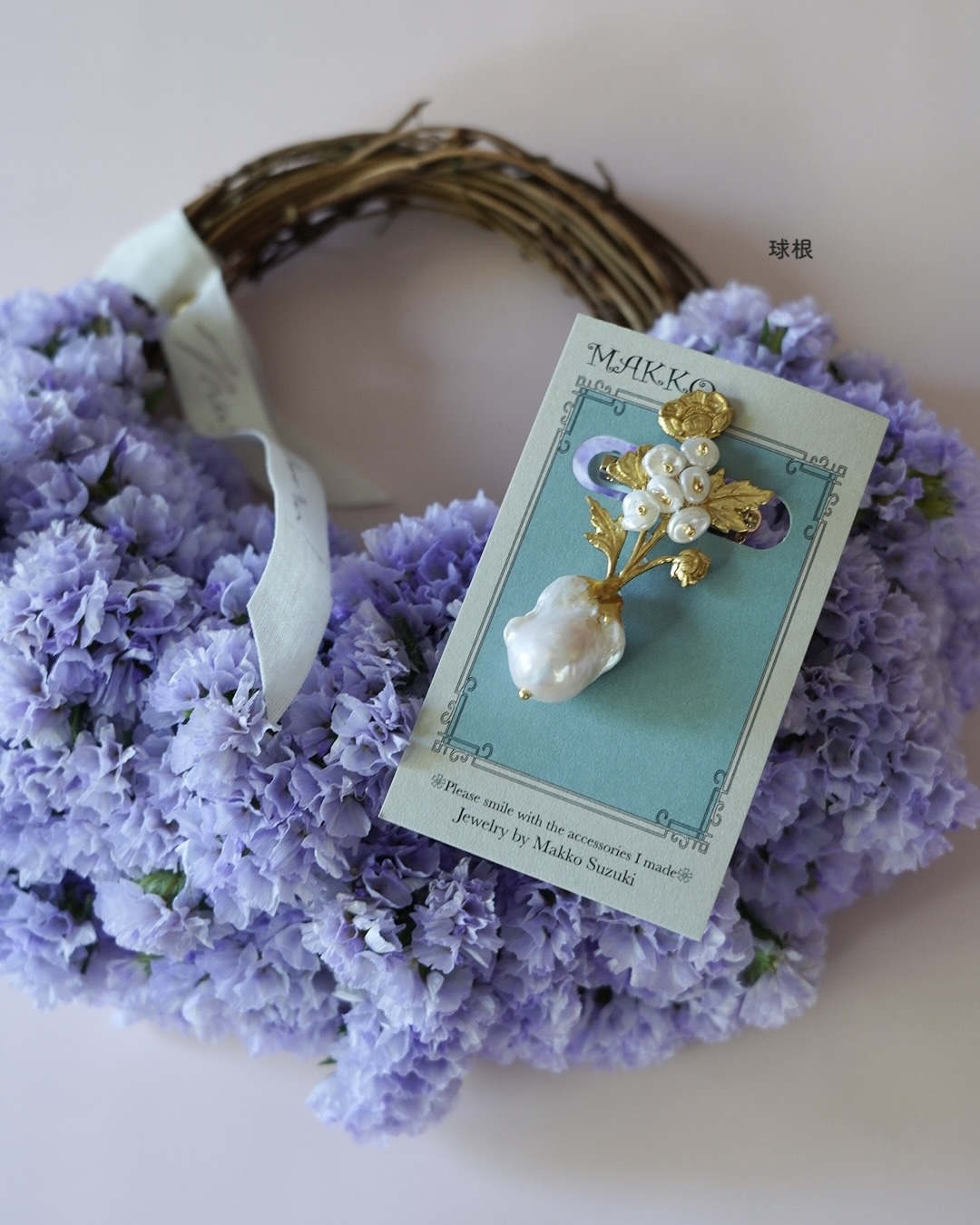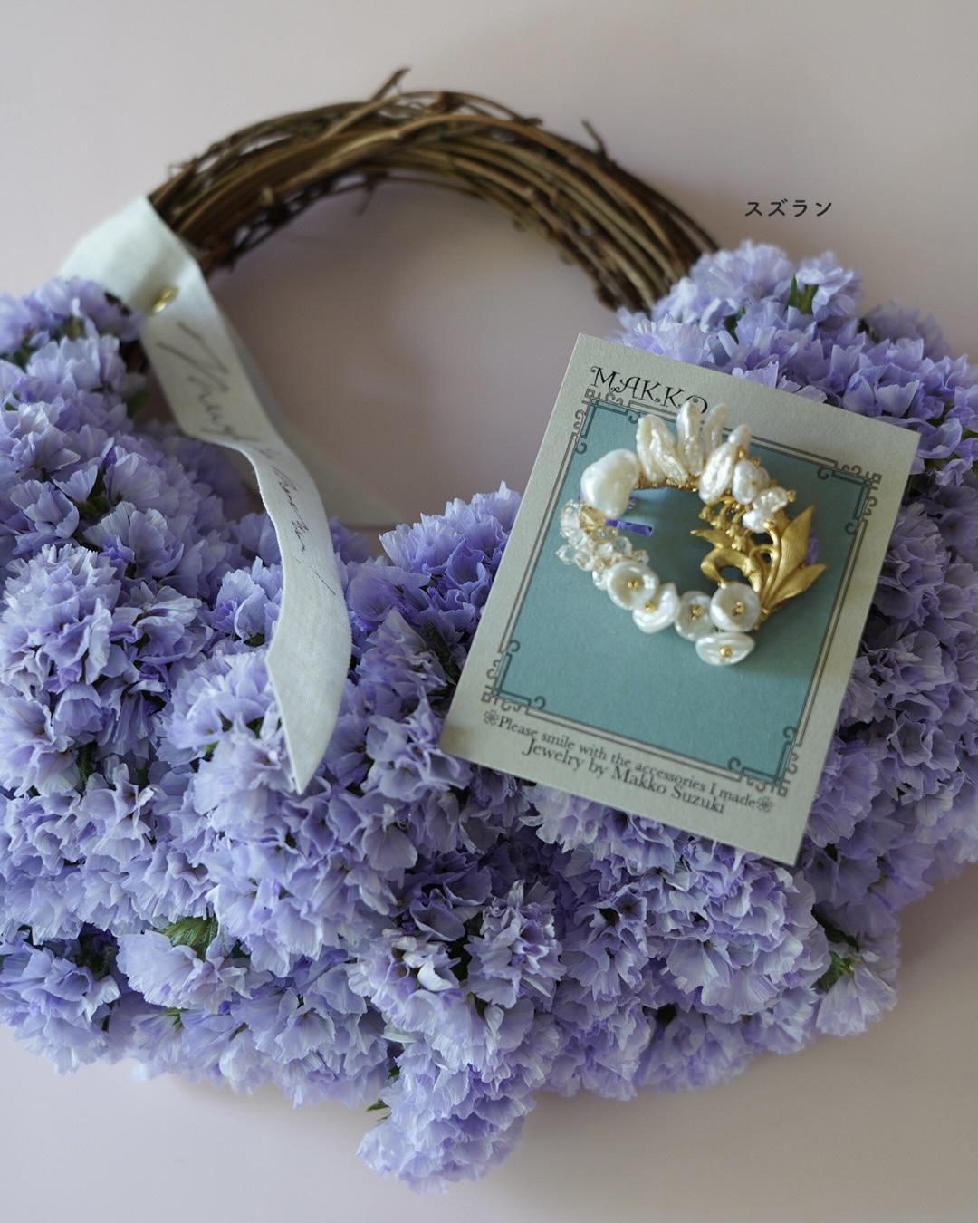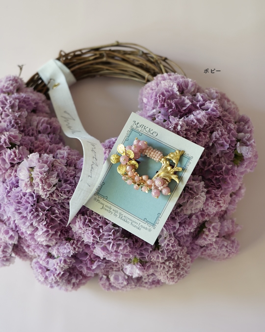 2026 Mother’sDay Gift | 天然石のブローチとスターチスのハーフリースセット